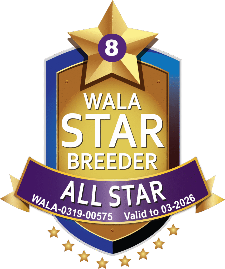 We proudly hold the platinum paw level distinction with the Australian Labradoodle Association of America (ALAA) and the All-Star award from the Worldwide Australian Labradoodle Association (WALA). Our breeding dogs are registered with both organizations, ensuring your puppy comes from a verified lineage with confirmed health clearances.