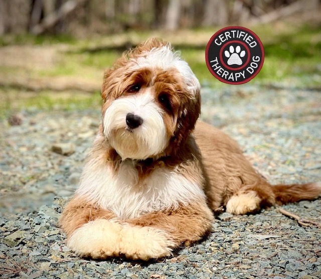 Maci is our sugary sweet girl, known for her gentle temperament and intuitive nature. With both of her parents being certified therapy dogs, she embodies love and compassion, making her the perfect candidate for creating amazing family dogs. Always eager to cuddle and play, Maci is a social butterfly who thrives on human interaction and enjoys the company of other dogs.