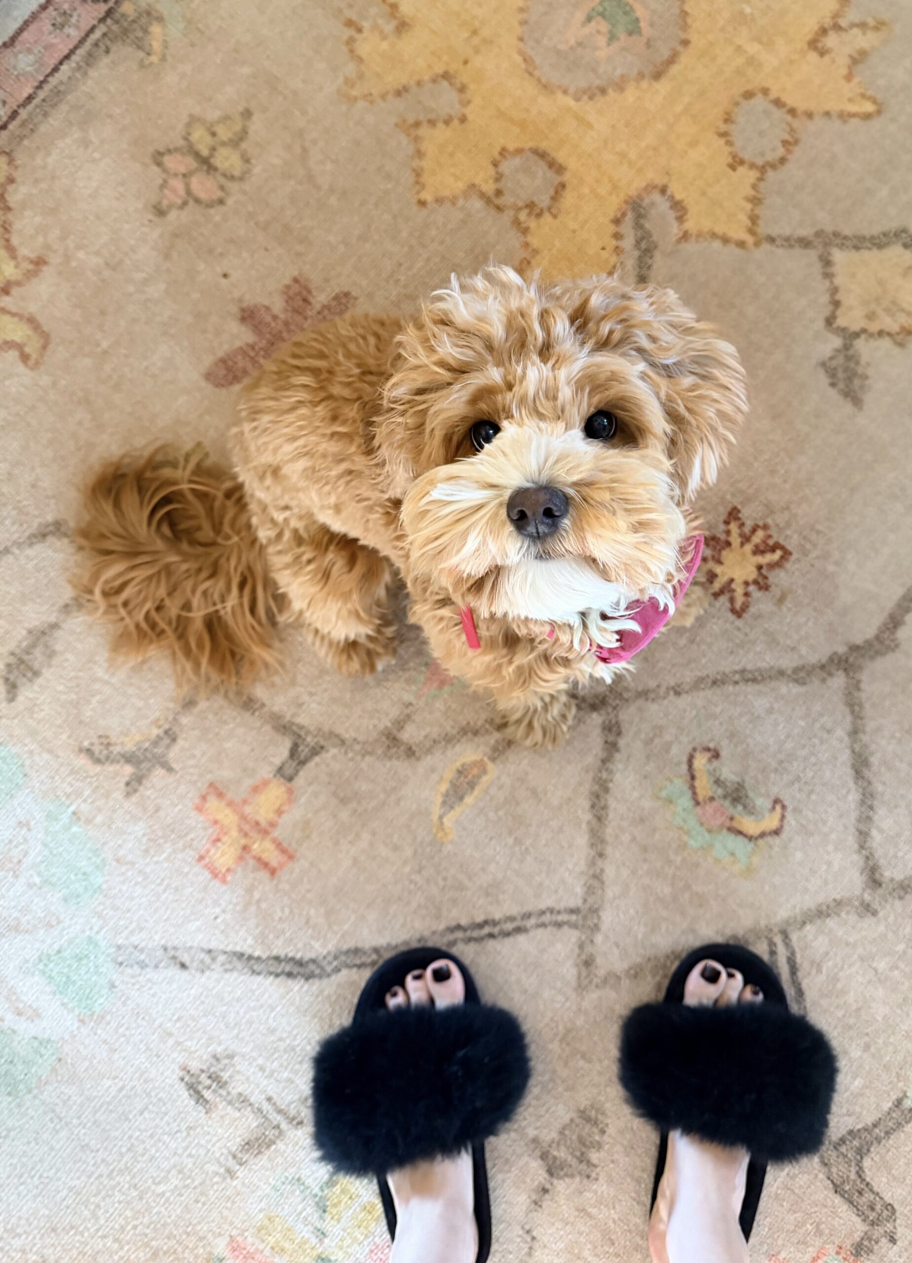 Josephine is AMAZING! She is a sweet girl with a soft and relaxed, but confident, temperament. She loves her human siblings and her buddy Josie (above). She enjoys her walks and playing with other dogs, and she’s never met a human she wouldn’t love to cuddle. Josephine’s host family’s plan is for Josephine to earn her certification as a therapy dog, which is well within reason for such an incredibly intuitive and people-oriented dog! We are proud to have Josephine in our program, and expect to see her stellar temperament shine through in her offspring!